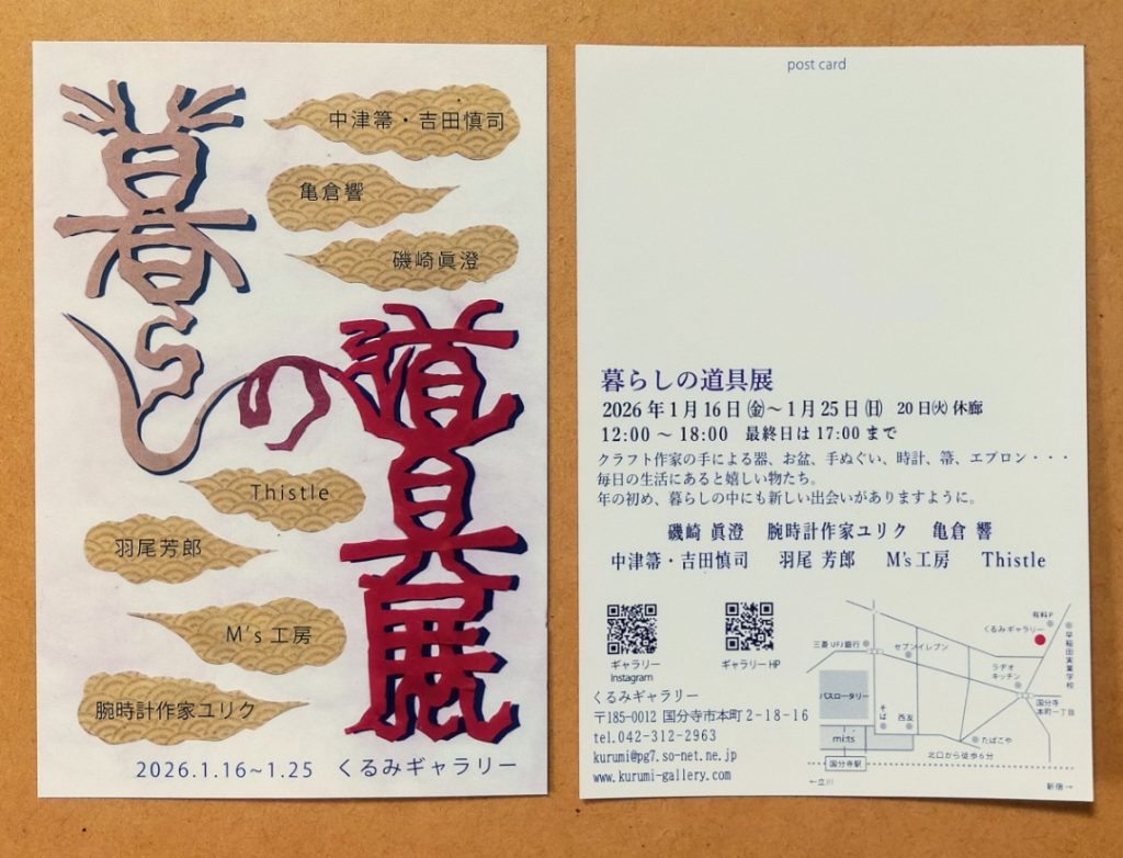 毎年参加している、東京の国分寺、くるみギャラリーでの展示会に吉田が参加します。